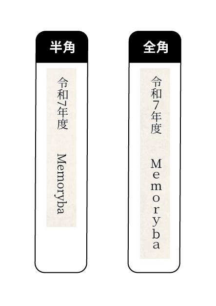 背表紙内の背文字については縦書きとなるため、半角文字と全角文字では文字自体の縦横の向きが変わります。